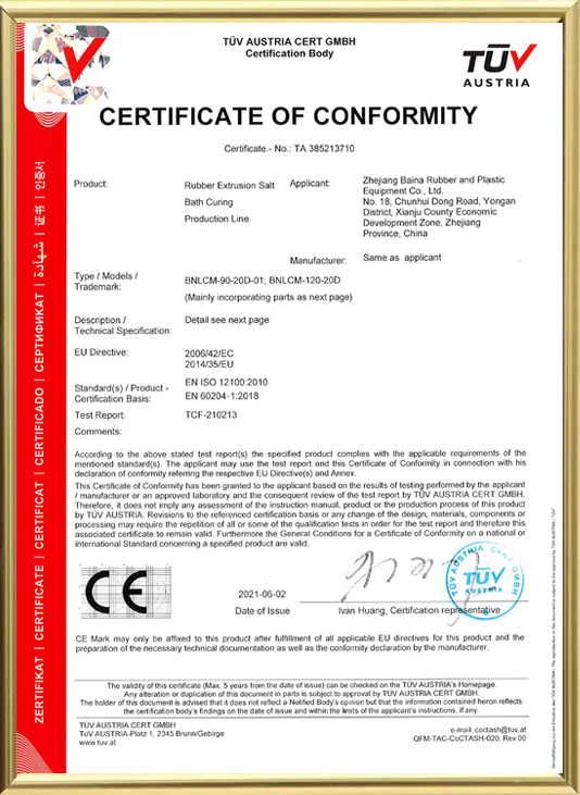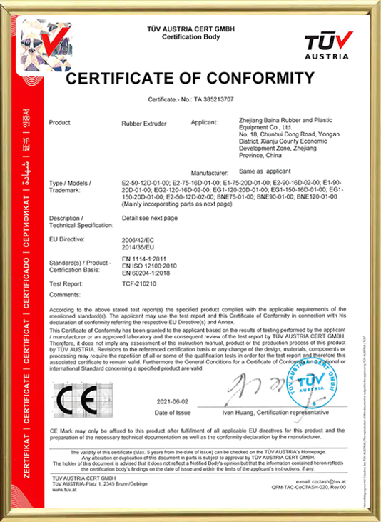Zhejiang Baina Rubber & Plastic Equipment Co., Ltd, founded in 1998, is an acknowledged specialist in the design and manufacture of rubber extrusion equipment and engineered rubber products.  We supply extruders, extrusion plants, extrusion dies, vulcanization plants, downstream equipment, laboratory equipment and automation solutions companies all over the world.
