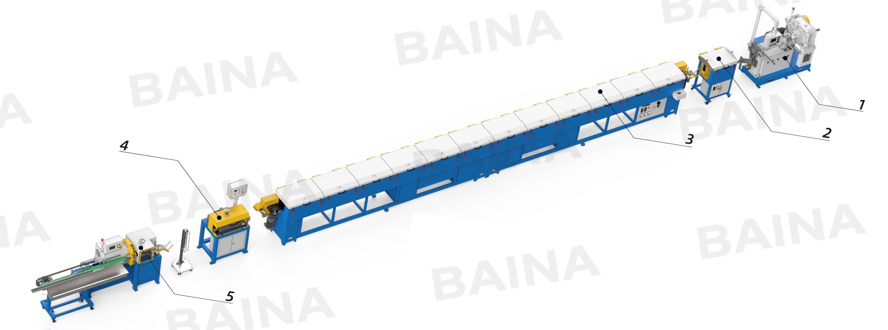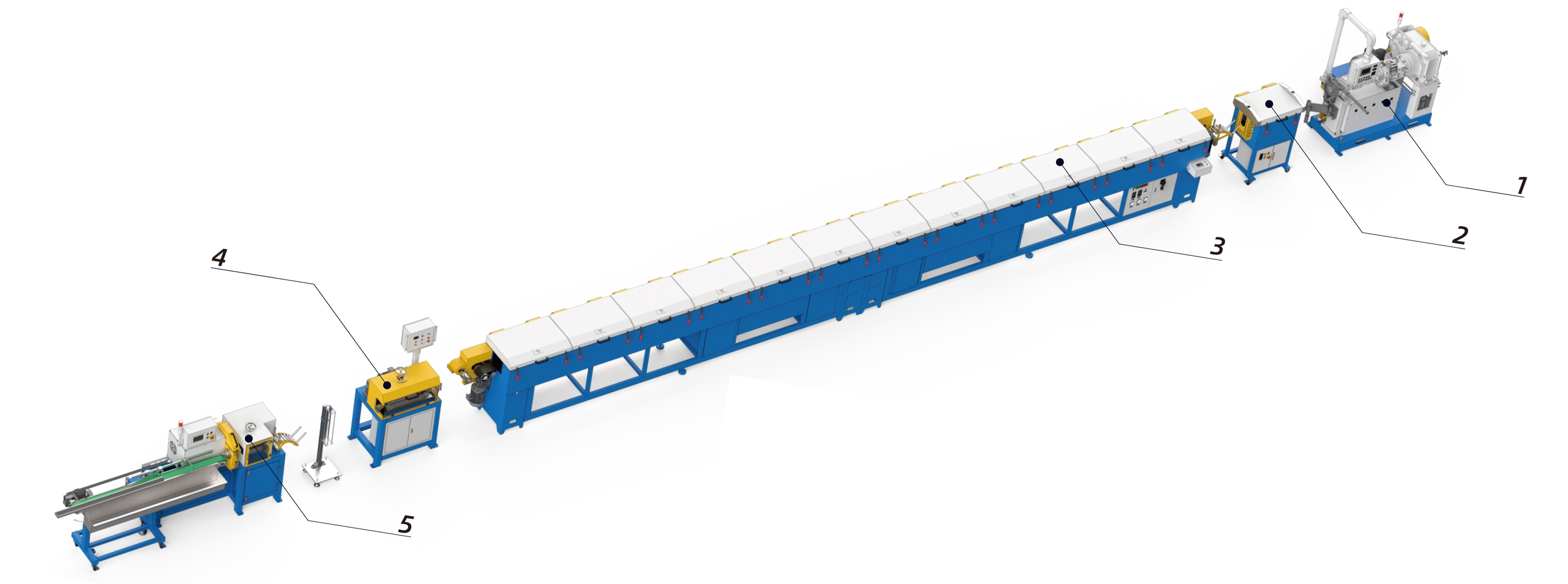 | 1-275mm 14D Silicon extruder | 3-12m Hot air curing oven | 5-Cutting machine |