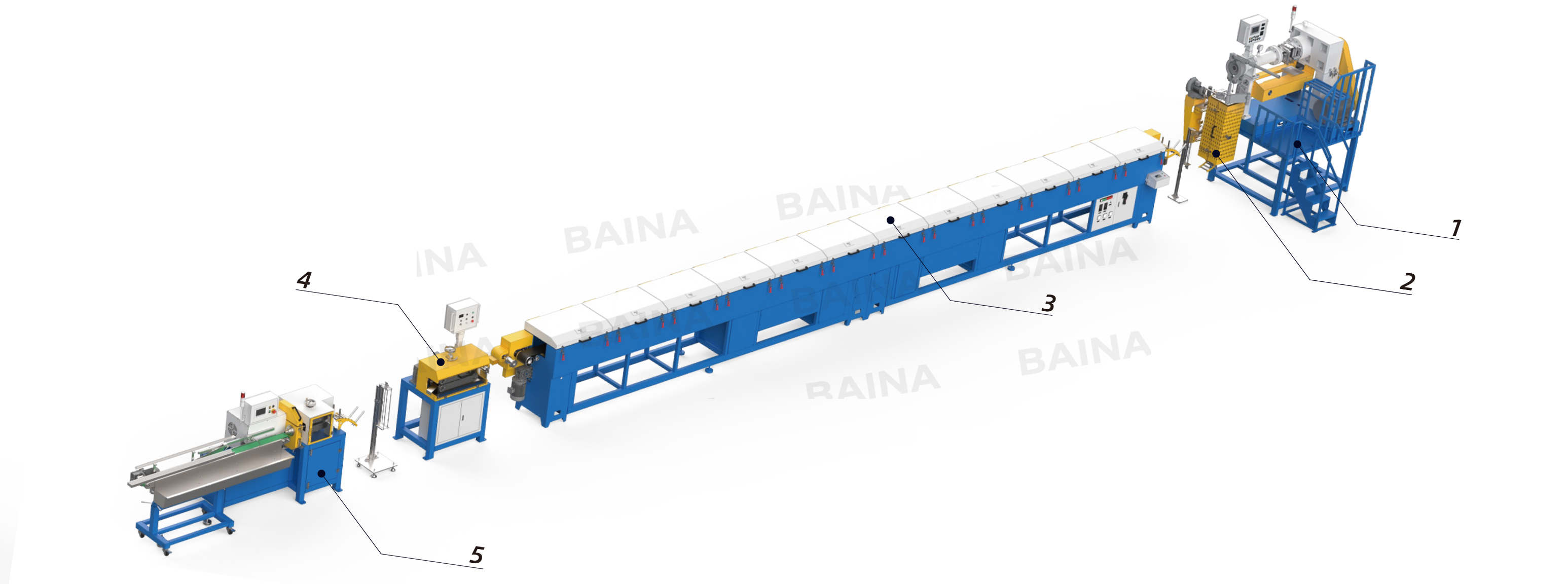 | 1-Vertical platform | 3-12m Hot air curing oven | 5-Cutting machine |